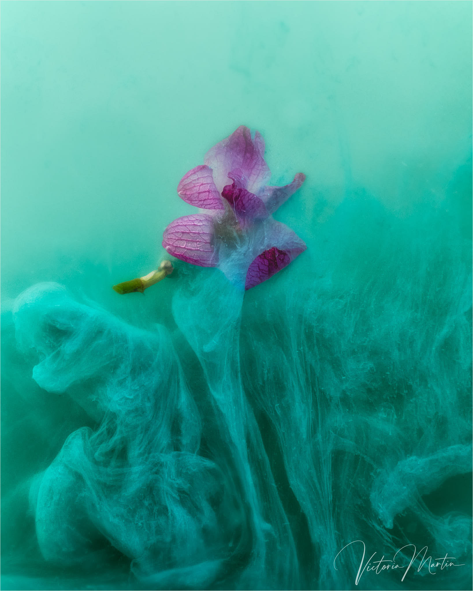 “Orchid Dressed in Teal” photograph by Victoria Martin